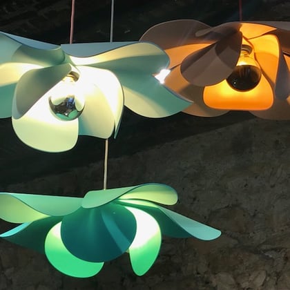 Toutes les lampes sont plissées à la main artisanalement dans l’atelier de Bloomboom.
