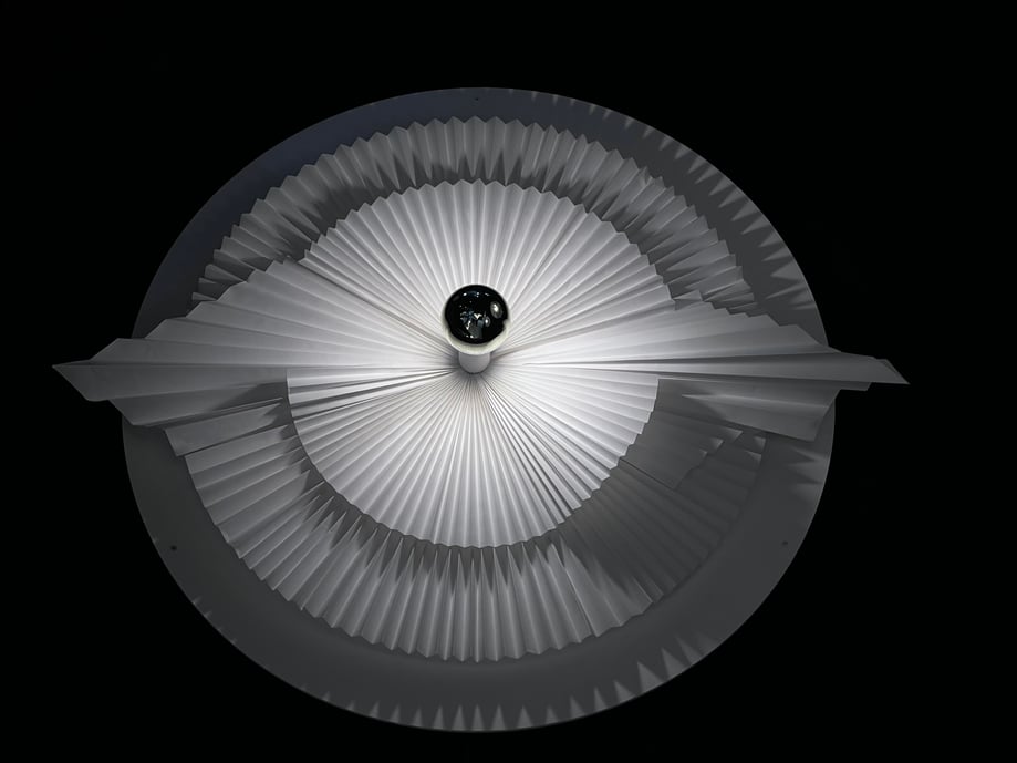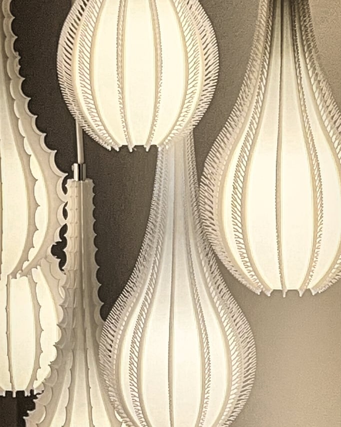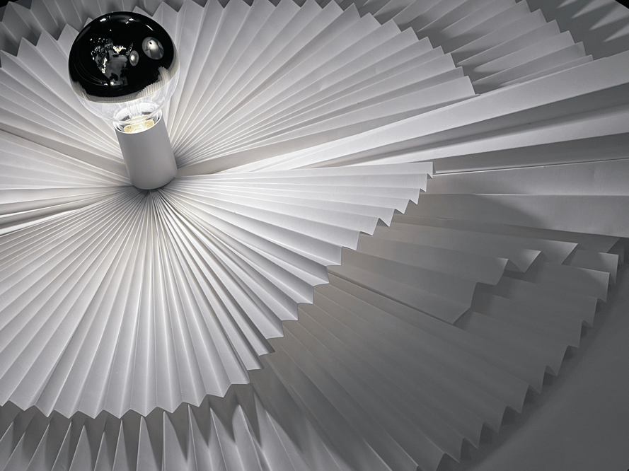 qui puise son inspiration dans l’art minutieux et précis du pliage. Chaque pièce de ce luminaire est méticuleusement conçue pour capturer l’essence même du pli, créant ainsi un jeu fascinant entre l’ombre et la lumière. Lorsque cette dernière se diffuse à travers les plis, elle projette des motifs envoûtants qui transforment l’espace en un spectacle visuel captivant. Chaque pli est une histoire visuelle, et l’ensemble crée une ambiance subtile de rêveries et d’émotions.