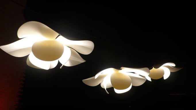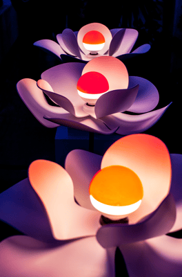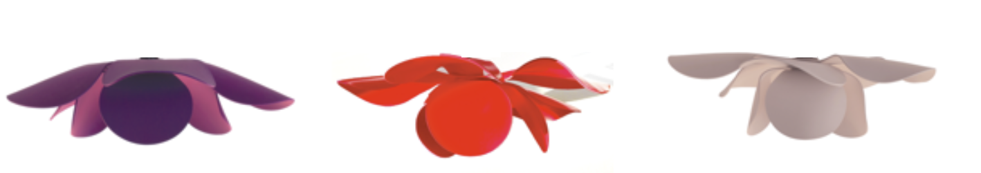 l' histoire d'une collection de lampes-fleurs, des modèles ludiques à la fraîcheur résolument pop avec chacun son visage, son caractère propre, chaudement coloré ou avec motif graphique noir et