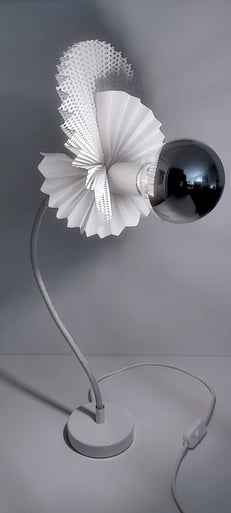 Bienvenue dans notre nouvel univers lumineux, une création qui puise son inspiration dans l'art minutieux et precis du pliage. Chaque pièce de ce luminaire est méticuleusement conçue pou capturer l'essence même du pli, créant ainsi un jeu fascinant entre l'ombre et la lumière.